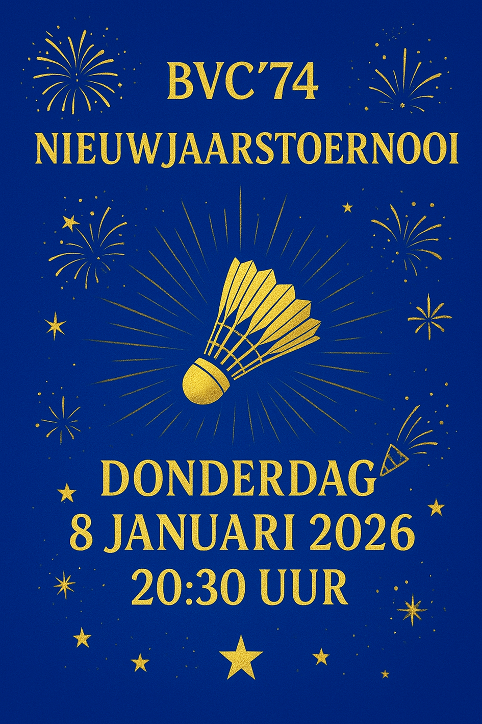 Beste leden,Traditiegetrouw organiseren we voor de senioren en jeugdspelers van de tweede groep van onze vereniging ook dit jaar een ✨BVC’74 Nieuwjaarstoernooi✨, en wel op donderdagavond 8 januari 2026! 🥂We…